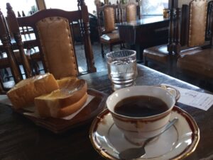 ちょうどお昼前でお腹も空いていたので、分厚いトーストとコーヒー♪